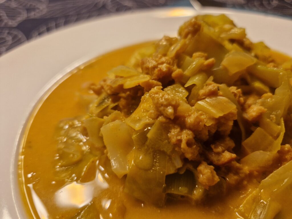 Den Spitzkohl in Streifen schneiden, Zwiebel würfeln, beides zusammen anschmoren in etwas Bratfett, Knoblauch dazuquetschen. Würzen und mit Weißwein ablöschen. Darin ca. 5 Minuten köcheln lassen, dann kochendes Wasser hinzufügen und mit dem veganen Frischkäse abschmecken. Lecker und herzerwärmend!