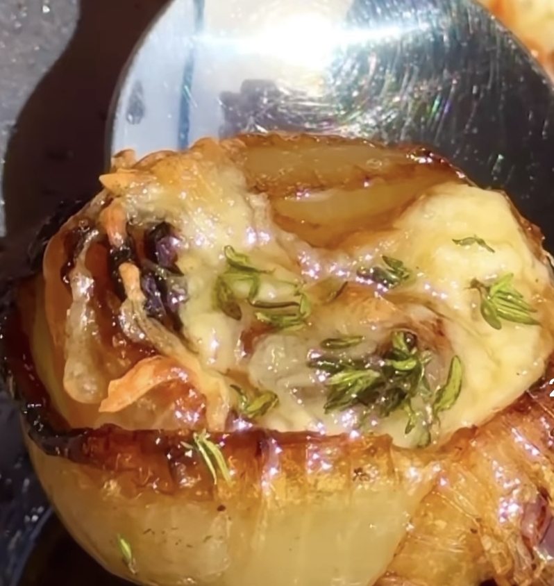 So viele Zwiebeln schälen und halbieren wie die Muffinform fasst. Die Muffinform mit Olivenöl ausstreichen. Zwiebeln daraufsetzen, leicht salzen, mit etwas Olivenöl beträufeln, ein Flöckchen Margarine darauf geben. Für ca. 40 Minuten bei 200- 220 Grad im Ofen backen. Dann mit (frischem) Thymian, Pfeffer, veganem Käse und schließlich einem Klecks Agavendicksaft toppen und nochmal für 5 Minuten in den Ofen stecken. Ganz zum Schluss ein paar Flocken Fleur de sel hinzufügen.