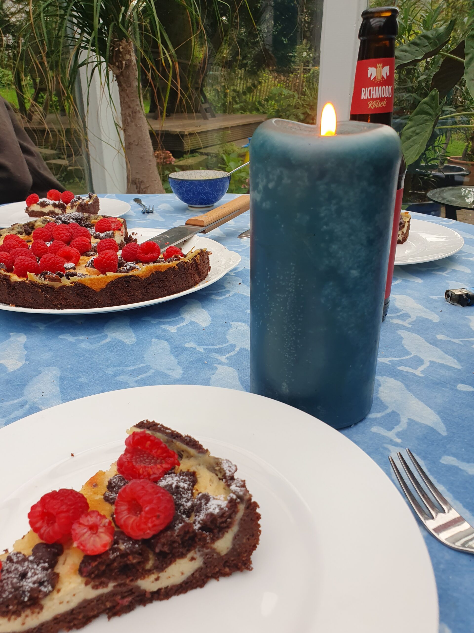 Springform mit Backpapier auslegen. Mehl, Backpulver, Salz, Kakao und Zucker vermengen; Alsan in Stücken hinzugeben. Alles zu einem Teig verkneten. Wenn es zu bröselig ist, die Pflanzenmilch hinzufügen. Ca. 1/3 des Teiges für später abnehmen. Die Springform mit dem Teig auskleiden und einen 3-4 cm hohen Rand formen. Für die Füllung die Alsan in einem kleinen Topf vorsichtig schmelzen. Puddingpulver in der Pflanzenmilch verrühren. Sojaquark, Pflanzensahne, Zucker und Vanilleextrakt gut verrühren. Dann die flüssige Alsan, Zitronensaft und die Puddingmischung hinzugeben und unterrühren. Füllung auf dem Schoko-Boden verteilen, glatt streichen. Den Kuchen 30 Minuten bei 180 Grad backen. Währenddessen aus dem abgenommenen Teig Stücke zupfen und auf dem vorgebackenen Kuchen verteilen. Den Kuchen weitere 30 Minuten zu Ende backen. Gut auskühlen lassen. Am zweiten Tag schmeckt er besonders gut! Nach eigenen Vorstellungen mit Puderzucker, Obst etc. dekorieren.