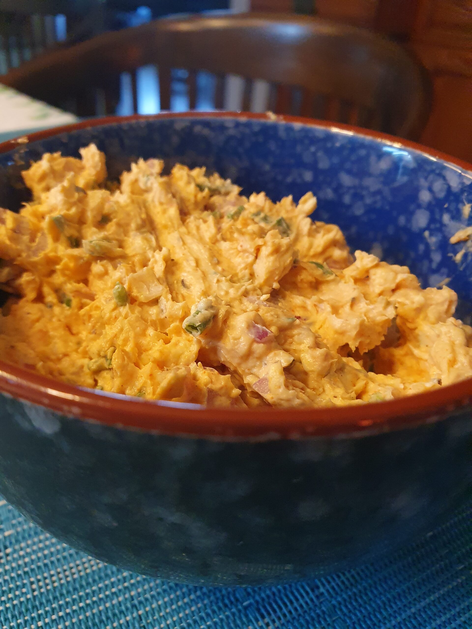 Alle Zutaten mit einer Gabel miteinander verrühren. Zwiebeln entweder würfeln und untermischen oder in Ringen zusammen mit Schnittlauch und Kümmel dazu servieren. 😋