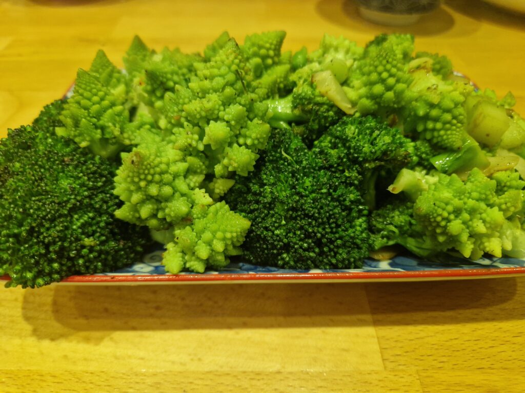 Dieses wahnsinnig leckere Gemüse stammt von der Solawi Kathringer Grünzeug. Ich war etwas überrascht, so spät im Jahr solches Gemüse in der Kiste vorzufinden. Der Punkt ist, durch die steigenden Temperaturen verlängern sich die Anbauzeiten in den Herbst hinein. Allerdings ist die Blütenbildung bei diesen Kohlarten temperaturabhängig, sodass der Anbau von Blumenkohl, Brokkoli und Romanesco eine Herausforderung für die Bauern sind.